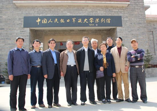 传承发扬创新的抗大精神——北京抗大光荣传统研究会诗书画院调研组邢台纪行文/玄阿 2012年4月7日至10日,北京抗大光荣传统研究会副会长、北京抗大研究会诗书画院院长刘泽林、研究会副会长、副院长徐辉、研究会理事、副院长郭帆(玄阿)、诗书画院副秘书长王林江(玄一)以及特邀教育部原办公厅主任、中国教育协会常务副会长郭振友、教育部原老干局局长杨宣等一行六人,就新时期如何学习宣传弘扬抗大精神等问题,参观了邢台抗大纪念馆、拜谒了前南峪村领导和抗大将军碑林,到到以抗大精神办学的邢台启慧书法学校等处进行了调研以及书画交流等活动。本次活动得到了河北省委办公厅、省委老干局、河北省军区、邢台市委市政府、老干局、教育局、邢台军分区、邢台县委县政府、教育局等单位的大力支持。抗大纪念馆所在地邢台县浆水镇党委政府以及前南峪村给与了大力协助。 抗大是我党、我军在民主革命时期创建的唯一一所高等军事院校。抗大的教育方针、教学原则和教学方法,是党和毛泽东同志把马列主义同中国实际相结合的产物,是毛泽东教育思想和军事教育思想的光辉典范;抗大精神是延安精神的重要组成部分。抗大坚定正确的政治方向、理论联系实际和艰苦奋斗、英勇牺牲的革命精神已成为我党、我军的光荣传统与优良作风。抗大办学十年间,培养出二十余万名军政干部,为我党我军的发展壮大,为夺取抗日战争和解放战争的胜利,为新中国社会主义革命和建设事业的发展,作出了不可磨灭的贡献。抗大最后的辉煌岁月就是在河北邢台这块具有悠久革命历史和光荣革命传统的英雄土地上度过的。 成立于1999年北京抗大光荣传统研究会及其所属诗书画院的宗旨是:以马列主义、毛泽东思想和邓小平理论为指导,贯彻党的基本路线,坚持四项基本原则,配合党的中心工作,有计划有组织地研究宣传抗大精神和优良传统,努力提高全民族思想道德品质,为社会主义两个文明建设服务。具体任务是:1、认真贯彻党的路线、方针政策,积极配合党的中心工作,研究宣传抗大精神,协助有关部门和单位,建立爱国主义教育和光荣传统教育基地,对青少年一代进行爱国主义教育,革命人生观教育,革命历史传统教育,艰苦奋斗教育,关心青少年一代的健康成长,使抗大精神千秋万代永放光芒;2、认真回顾历史,交流经验,推广学术研究成果,有计划地把成果编印成书刊,编录成影视片和革命歌曲等,为后代留下宝贵的文化遗产;3、结合重大节日开展联谊活动,举办书画展览等,尽力为抗大老同志做好服务工作。 调研组和当地有关军政领导共同认为,抗大纪念馆、将军碑林、全国劳模碑林、全国少儿碑林等红色资源是新世纪、新阶段弘扬和培育民族精神的宝贵财富,是进行革命传统教育和爱国主义教育的生动课堂。调研组和有关领导初步商定,今年适当时期在前南峪村举办新时期传承抗大精神研讨会、弘扬抗大精神百名将军书画展等系列活动。